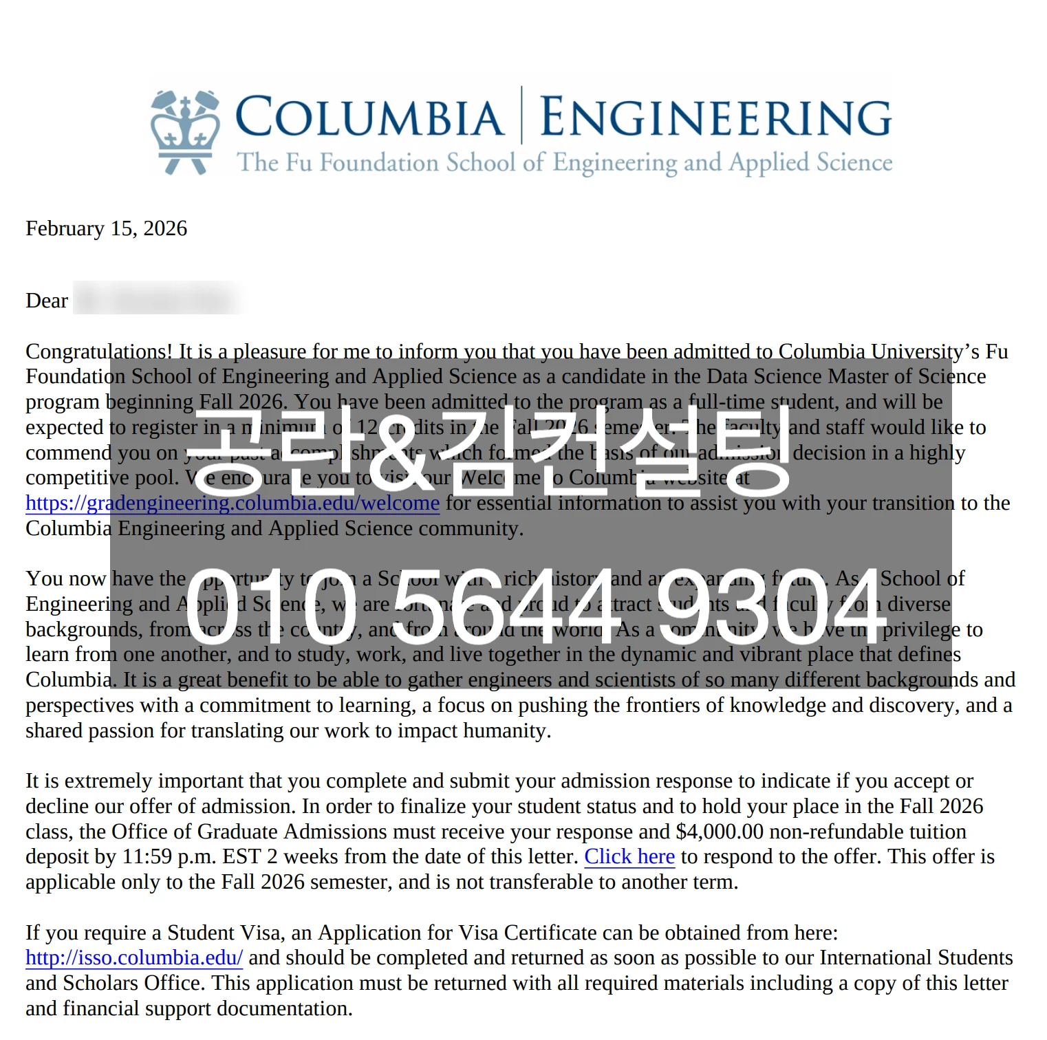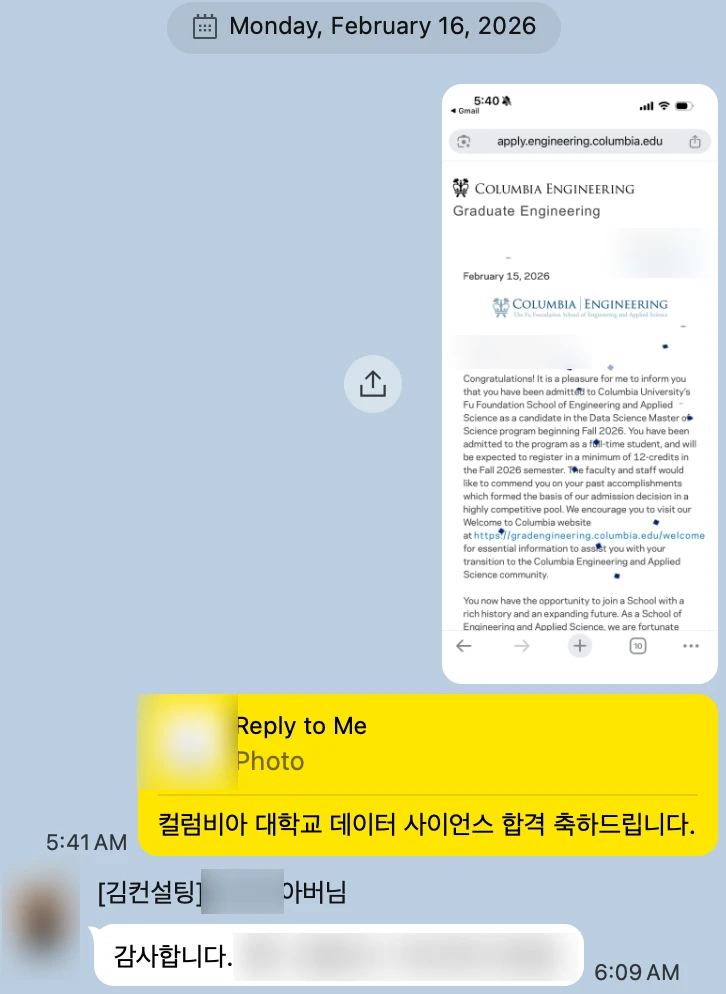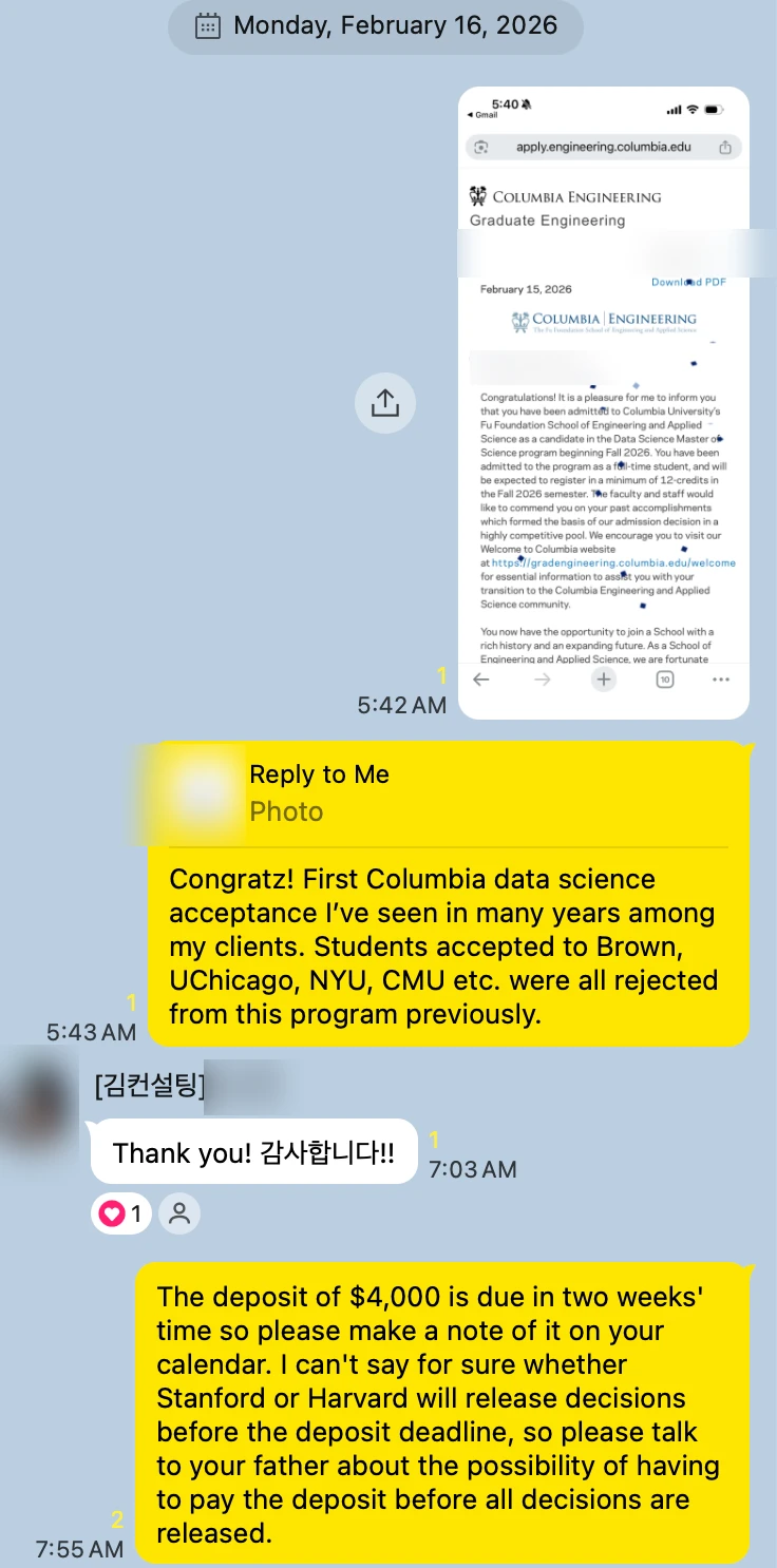 We are proud to share an admission outcome to the M.S. in Data Science program at Columbia University (Fu Foundation School of Engineering and Applied Science) for Fall 2026.
