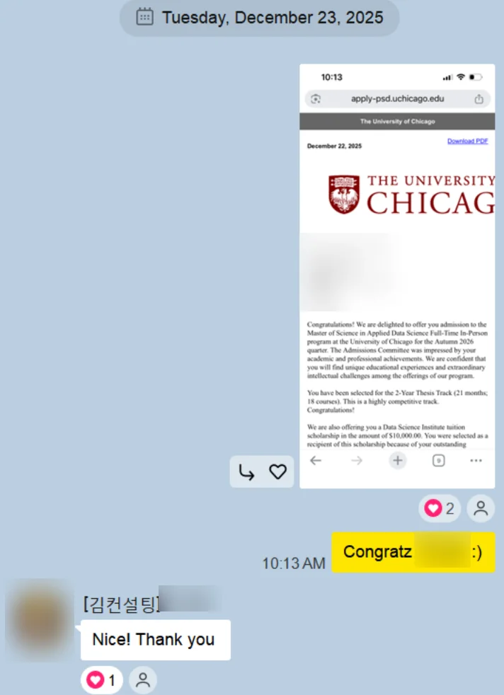 [Admission & Scholarship Result] University of Chicago – MS in Applied Data Science (Fall 2026)