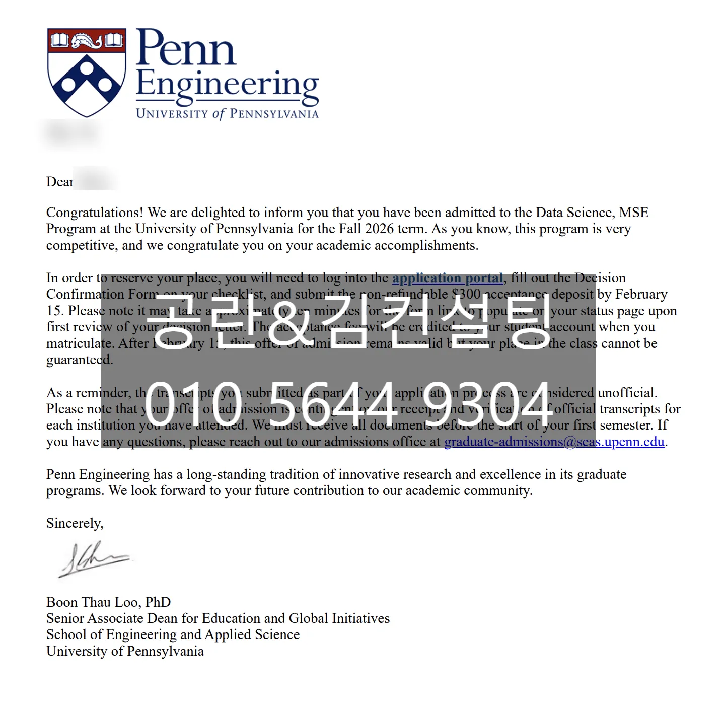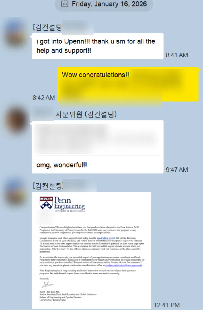 We are delighted to announce that a Kim Consulting client has been admitted to the Master of Science in Engineering in Data Science (MSE-DS) at the University of Pennsylvania. Congratulations on this remarkable achievement!