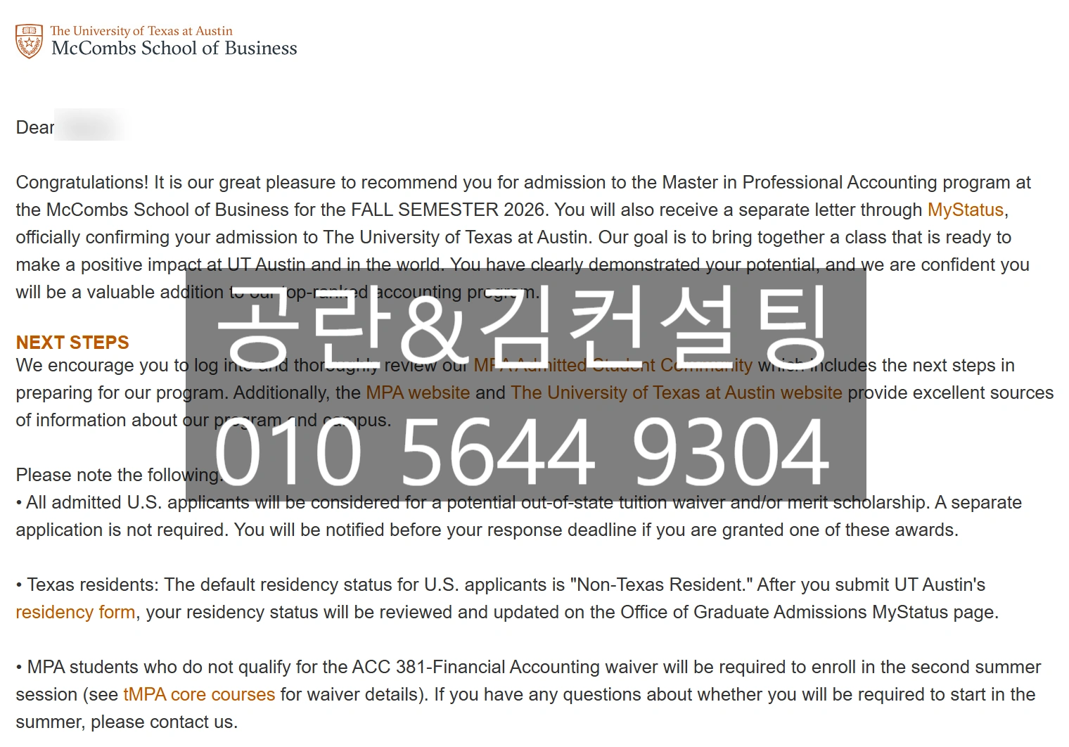 Admission Success | UT Austin McCombs (MPA)