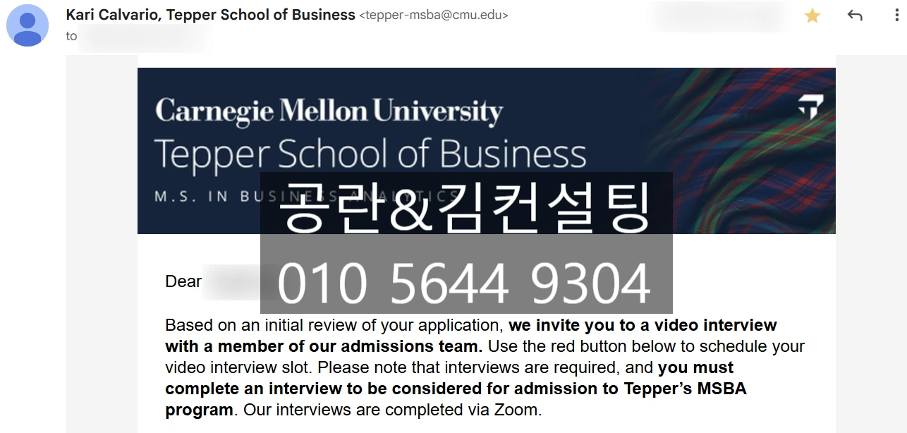 Kim Consulting Client Receives CMU Tepper MSBA Interview Invitation