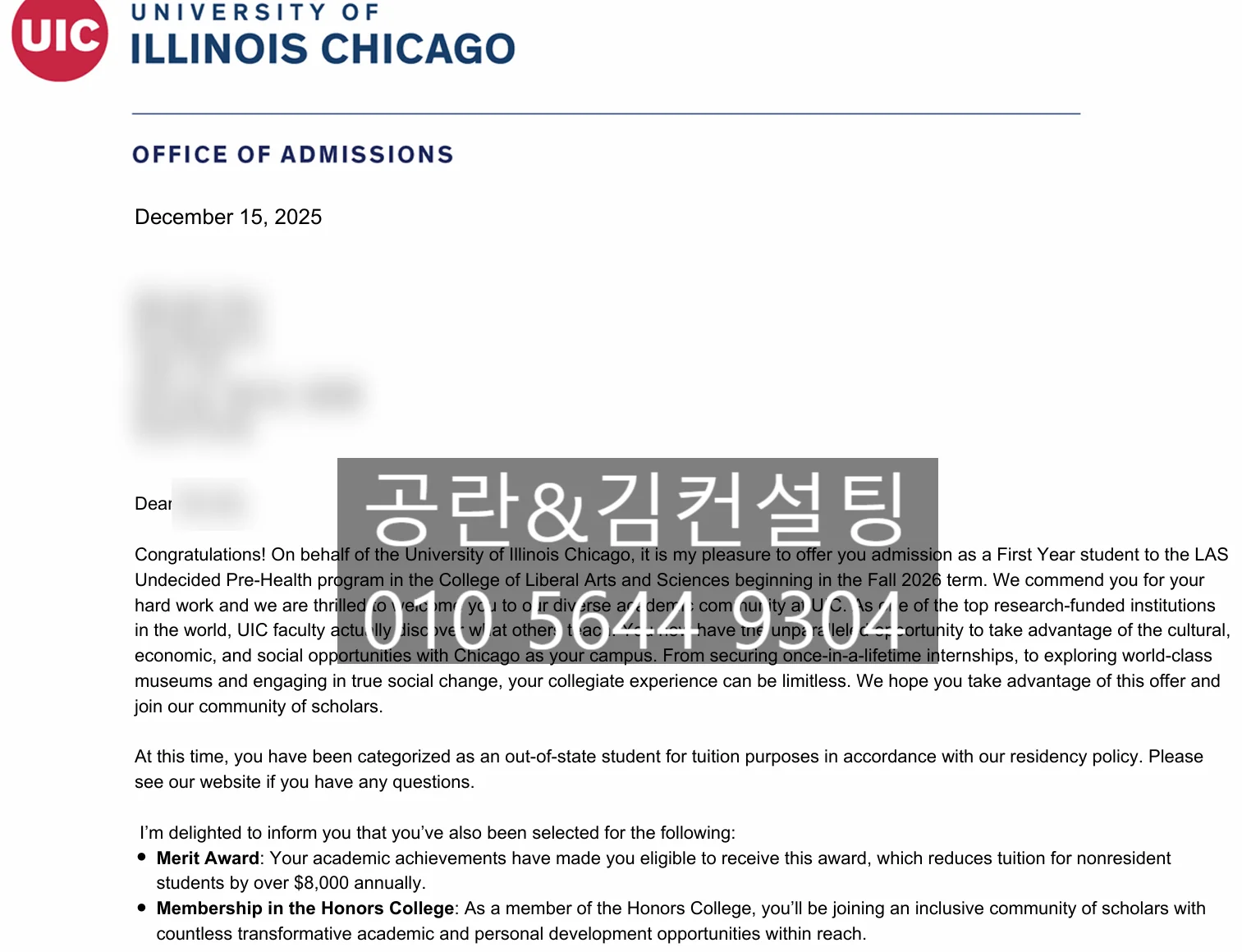 University of Illinois Chicago (UIC) Admission Result - Honors College Admission with Merit Scholarship