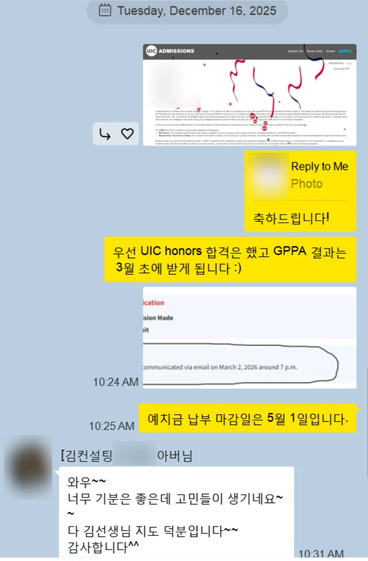 Kim Consulting is pleased to announce a successful undergraduate admission result for Fall 2026.